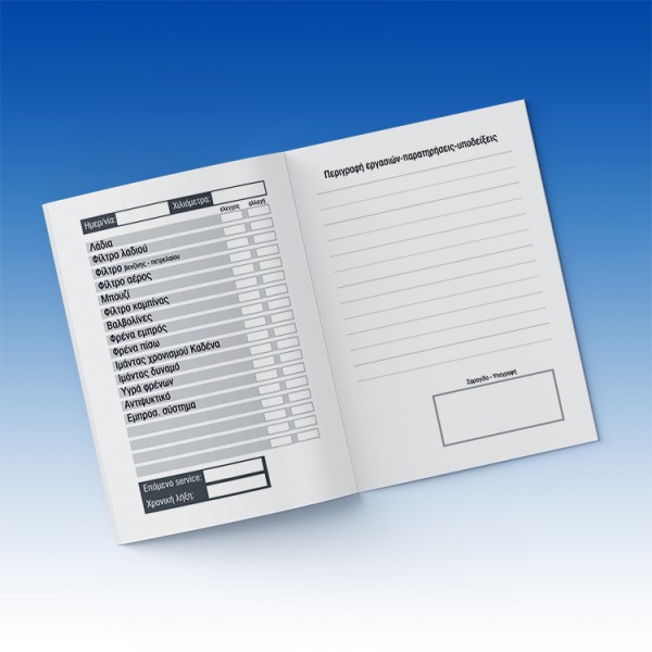 Βιβλίο τεχνικού ελέγχου αυτοκίνητου (βιβλίο service). 24 σελίδες (20 εσωτερικές + 4 εξώφυλλα).